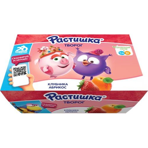 Творог для детей РАСТИШКА Клубника/Абрикос 3,5%, без змж, 6x45г в магазинах Лента
