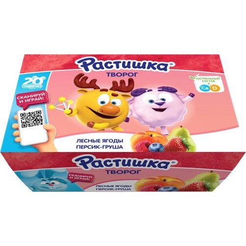Творог для детей РАСТИШКА Лесные ягоды/Персик, груша 3,5%, без змж, 6x45г в магазинах Лента