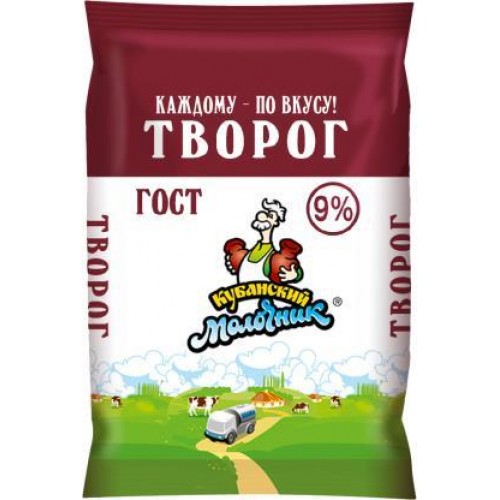 Наименование товара: Творог «Кубанский молочник», жирность 9%, упаковка 180 г.