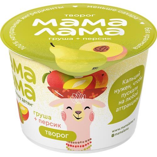 Творог МАМА ЛАМА с персиком и грушей 3,8%, без змж, 100г в магазинах Лента