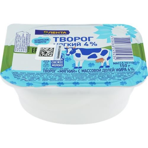 Творог мягкий ЛЕНТА 4%, без змж, 150г в магазинах Лента