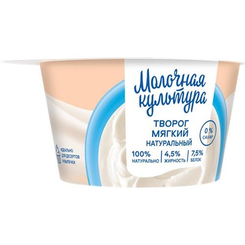 Творог мягкий МОЛОЧНАЯ КУЛЬТУРА 4,5%, без змж, 130г в магазинах Лента