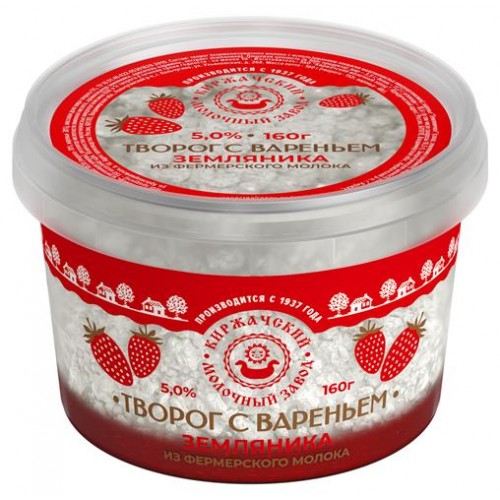 Творог рассыпчатый Киржачский МЗ с вареньем земляничным 5% БЗМЖ, 160 г (kastd) в магазинах Ашан
