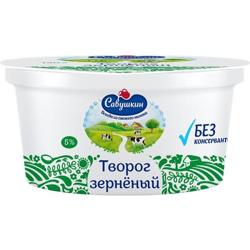 Творог САВУШКИН 101 зерно 5%, без змж, 130г в магазинах Лента