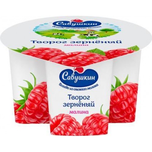 Творог зерненый Савушкин Малина 5% 130г в магазинах Магнит