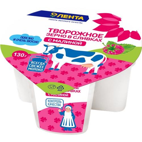 Творожное зерно ЛЕНТА Малина в сливках 5%, без змж, 130г в магазинах Лента