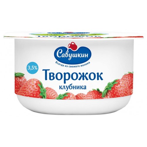 Творожок Савушкин клубника 3,5% БЗМЖ, 120 г (kastd) в магазинах Ашан