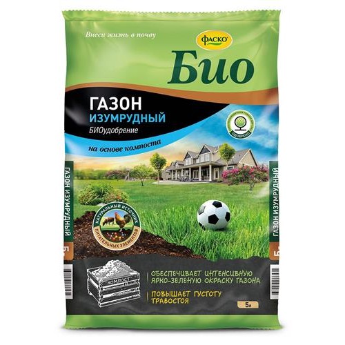 Удобрение сухое Фаско Био на основе компоста Изумрудный Газон органоминеральное, 5 л (kastd) в магазинах Ашан