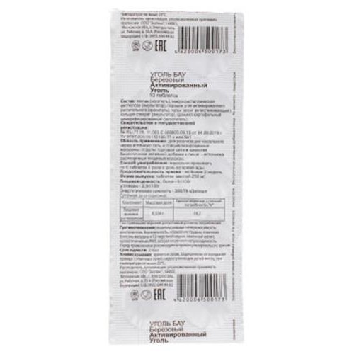 Уголь активированный Бау 250 мг, 10 шт (kastd) в магазинах Ашан