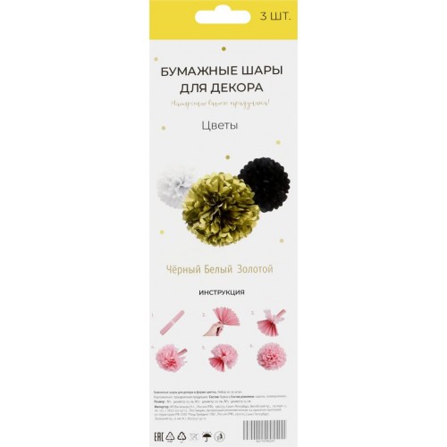 Украшение декоративное Party 15см, 20см, 25см бумажные цветы Арт. ПМПС3, 3шт в магазинах Лента