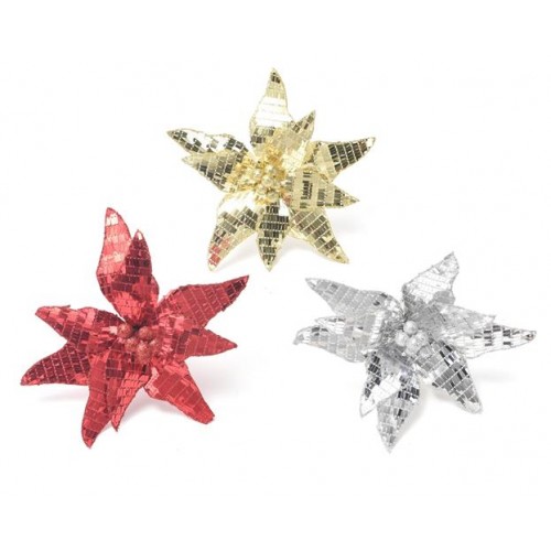 Украшение рождественское Цветок на клипсе, 22 см (kastd) в магазинах Ашан