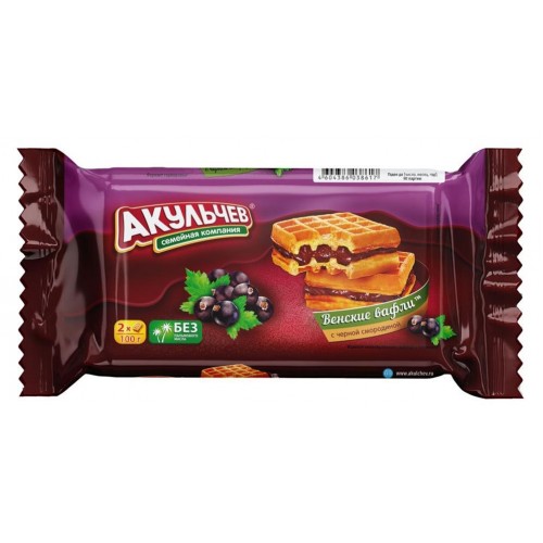 Вафли мягкие Акульчев Венские с черной смородиной, 100 г (kastd) в магазинах Ашан