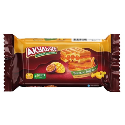 Вафли мягкие Акульчев Венские с манго маракуйя, 100 г (kastd) в магазинах Ашан