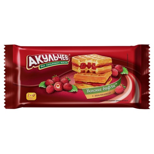 Вафли мягкие Акульчев Венские с земляникой, 100 г (kastd) в магазинах Ашан