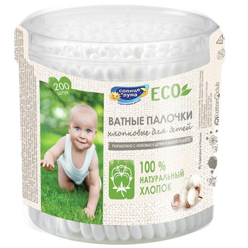 Ватные палочки для детей СОЛНЦЕ И ЛУНА стакан, 200шт в магазинах Авоська