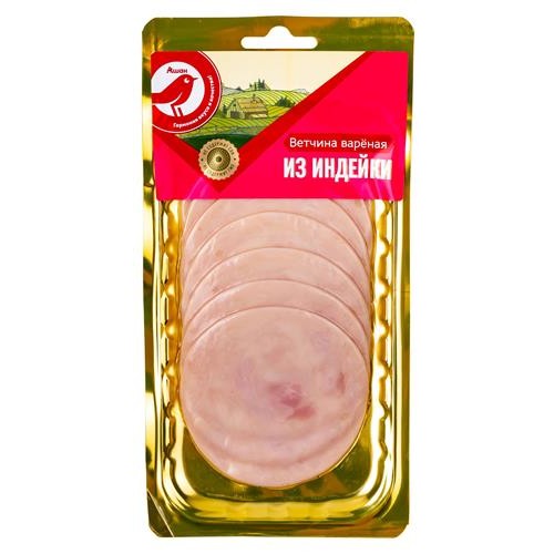 Ветчина АШАН Красная птица из индейки в нарезке, 150 г (kastd) в магазинах Ашан