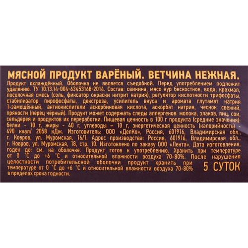 Ветчина МЯСУ БЫТЬ! Нежная, 500г в магазинах Лента