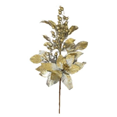 Ветка искусственная с цветком и ягодами золотая, 50 см (kastd) в магазинах Ашан
