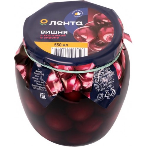 Вишня стерилизованная ЛЕНТА в нежном сиропе, с косточкой, 550мл в магазинах Лента
