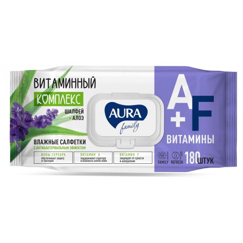 Влажные салфетки с антибактериальным эффектом Aura Family big-pack с крышкой, 180 шт (kastd) в магазинах Ашан