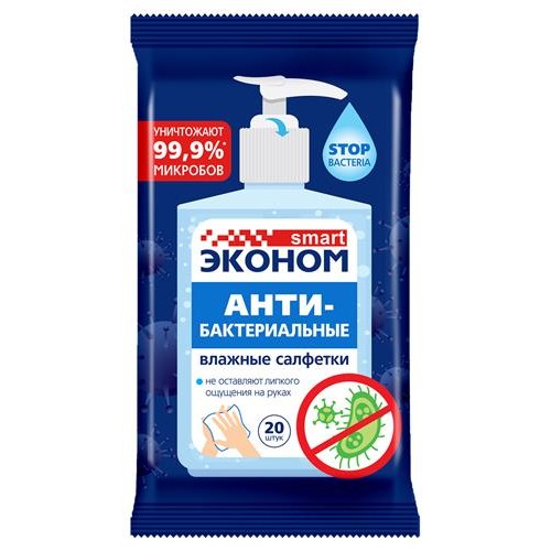 Влажные салфетки Smart Эконом антибактериальные, 20 шт в магазинах Ашан