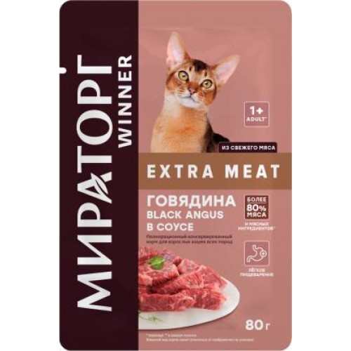 Влажный корм для кошек Мираторг Winner Extra Meat Black Angus говядина в соусе 80г в магазинах Магнит