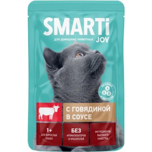 Влажный корм для кошек Smarti с говядиной в соусе 75г в магазинах Магнит