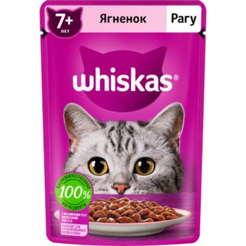 Влажный корм для кошек Whiskas полнорационный 7+ Рагу с Ягненком 75г в магазинах Магнит
