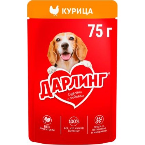 Влажный корм для собак Дарлинг Курица в подливе 75г в магазинах Магнит