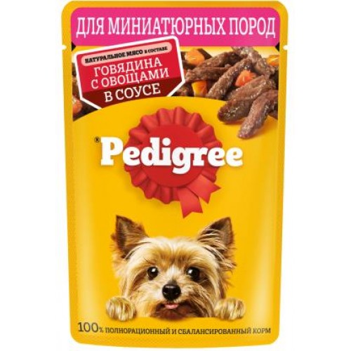 Влажный корм для собак Pedigree миниатюрных пород Паштет с говядиной и овощами в соусе 85г в магазинах Магнит