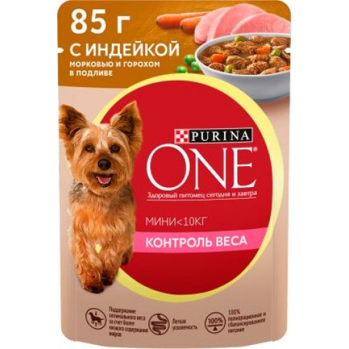 Влажный корм для собак Purina One При склонности к набору веса в соусе с индейкой 85г в магазинах Магнит