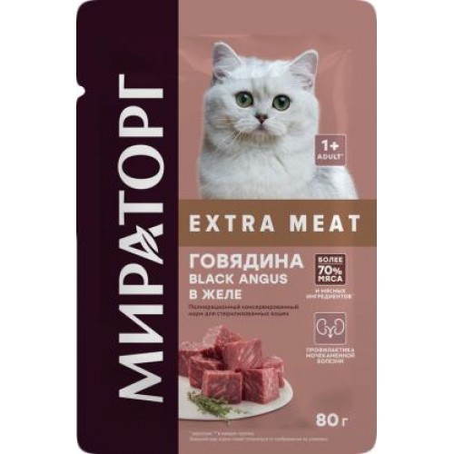 Влажный корм для стерилизованных кошек Мираторг Extra Meat Black Angus говядина в желе 80г в магазинах Магнит
