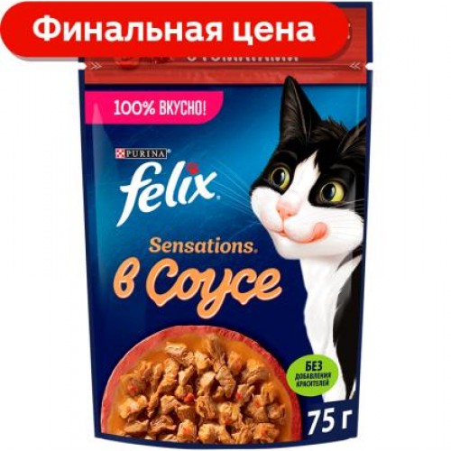 Felix Sensations с говядиной и томатами не содержит искусственных ароматизаторов, красителей и консервантов, что делает его абсолютно безопасным для употребления. Удивите свою кошку аппетитным сочетанием вкусов говядины и томатов в нежном соусе!