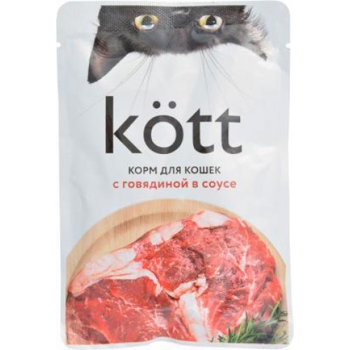 Влажный корм для взрослых кошек Kott с говядиной в соусе 75г - это высококачественный, легко усваиваемый рацион, разработанный специально для удовлетворения потребностей вашего питомца. Богатый вкус говядины в ароматном соусе обязательно привлечет внимание вашей кошки и вдохновит ее на активное мурлыканье.