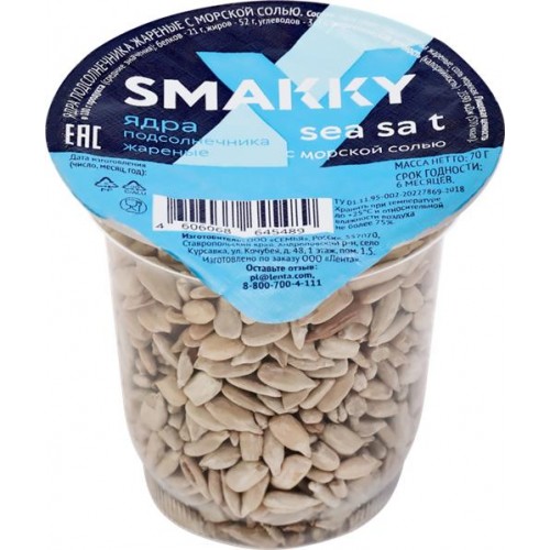 Ядра подсолнечника SMAKKY жареные, с морской солью, 70г в магазинах Лента