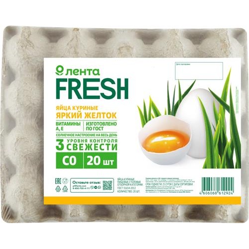 Яйцо куриное ЛЕНТА FRESH Яркий желток СО, 20шт в магазинах Лента