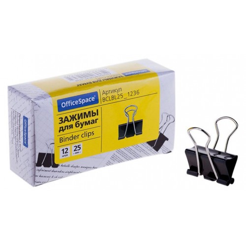 Зажимы для бумаг OfficeSpace черные 25 мм, 12 шт (kastd) в магазинах Ашан