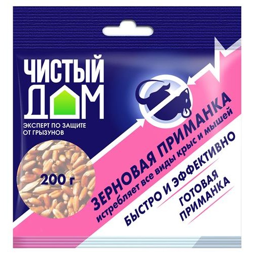 Зерновая приманка от крыс и мышей Чистый Дом, 200 г (kastd) в магазинах Ашан