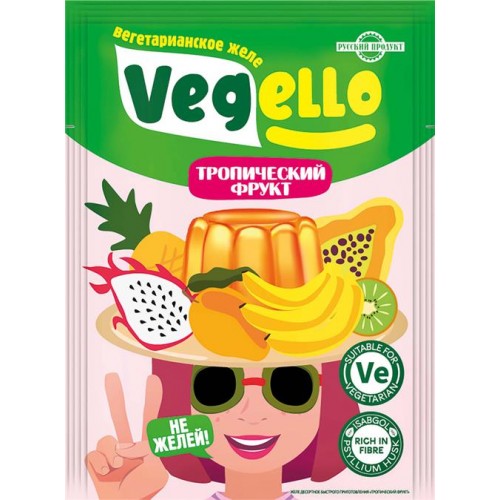 Желе РУССКИЙ ПРОДУКТ Vegello Тропический Фрукт – это сухой порошок, предназначенный для приготовления вкусного и полезного легкого десерта в домашних условиях. С ним вам не понадобится много времени и усилий, чтобы насладиться ароматным блюдом.