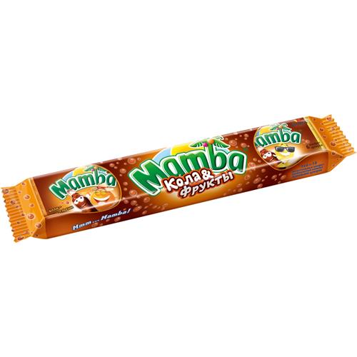 Жевательная конфета Mamba Кола & Фрукты со вкусами: Кола-Апельсин, Кола-Ананас, Кола-Лимон, Кола-Вишня, ТМ Storck в магазинах Пятерочка