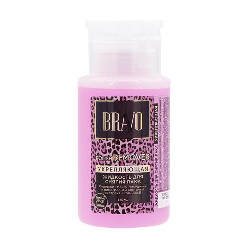 Жидкость для снятия лака «Bravo», объемом 150 мл, обеспечивает бережное снятие лака с ногтей. Уникальная формула средства включает ухаживающие компоненты, которые питают и укрепляют ногтевую пластину.