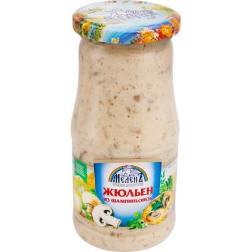 Жюльен Меленъ из шампиньонов - это высококачественный продукт, упакованный в удобную стеклянную банку весом 450 г. Идеально подходит для добавления в различные блюда, этот жюльен состоит из 100% натуральных шампиньонов и сливочного соуса, который придает ему нежную и тающую во рту текстуру. Отсутствие ГМО и красителей делает его абсолютно безопасным для употребления.