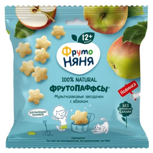 Злаки хрустящие ФрутоНяня ФрутоПаффсы мультизлаковые с яблоком, 21 г (kastd) в магазинах Ашан