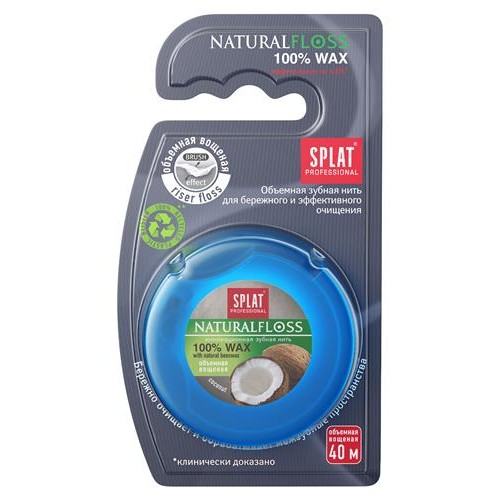 Зубная нить Splat с ароматом кокоса, 40 м (kastd) в магазинах Ашан