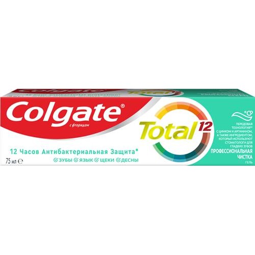 Зубная паста COLGATE Total 12 Профессиональная чистка, гель со специальным ингредиентом для гладких и блестящих зубов, с цинком и аргинином для антибактериальной защиты, 75мл в магазинах Лента