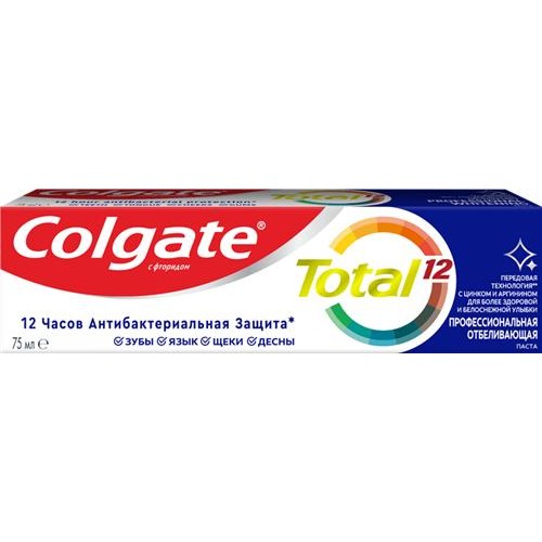 Зубная паста COLGATE Total 12 Профессиональная Отбеливающая с цинком и аргинином для борьбы с потемнениями эмали и с антибактериальной защитой, 75мл в магазинах Лента