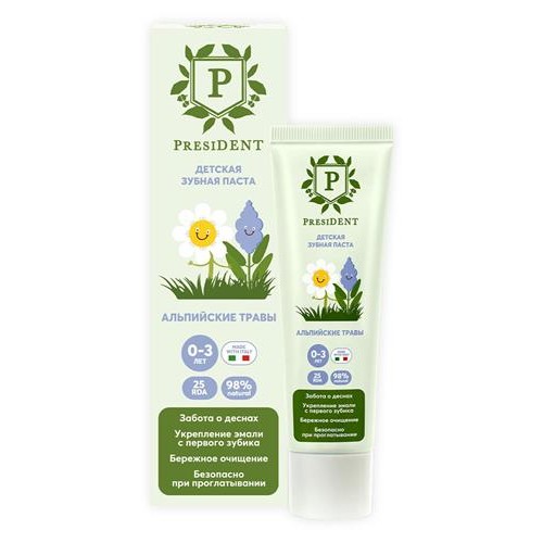 Зубная паста детская President Альпийские травы от 0-3 лет, 32 г (kastd) в магазинах Ашан