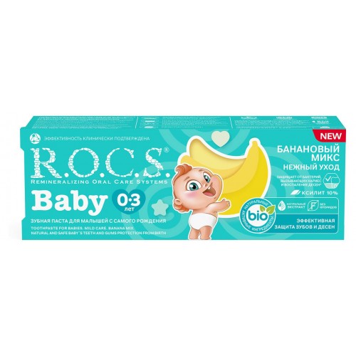 Зубная паста R.O.C.S. Baby Нежный уход Банановый микс с рождения, 45 г (kastd) в магазинах Ашан