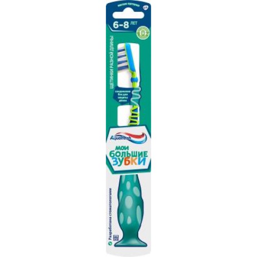 Зубная щетка детская Aquafresh «Мои большие зубки» от 6 до 8 лет, мягкая - это идеальный инструмент для бережной и деликатной очистки зубов вашего ребенка. Разработанная для детей в возрасте от 6 до 8 лет, эта зубная щетка обеспечивает мягкое воздействие на зубы и десны, особенно при смене молочных зубов на коренные.