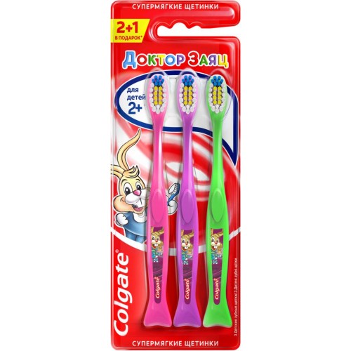 Зубная щетка детская COLGATE Доктор Заяц 2+1 супермягкая 2+ в магазинах Лента